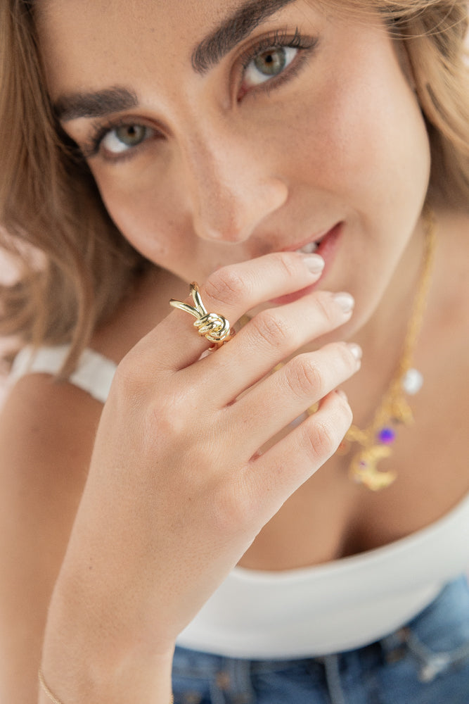- Anillo Graduable en Acero con baño en oro de 24k.