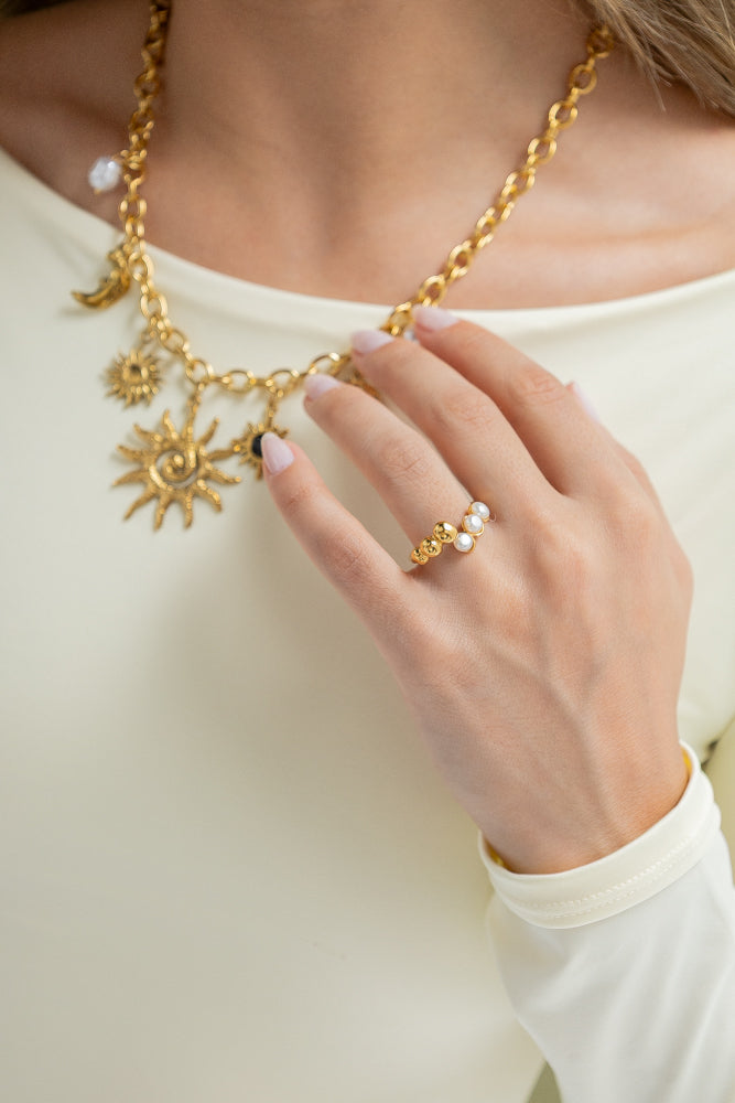 - Anillo Graduable en acero con baño en oro de 24k con perlas.