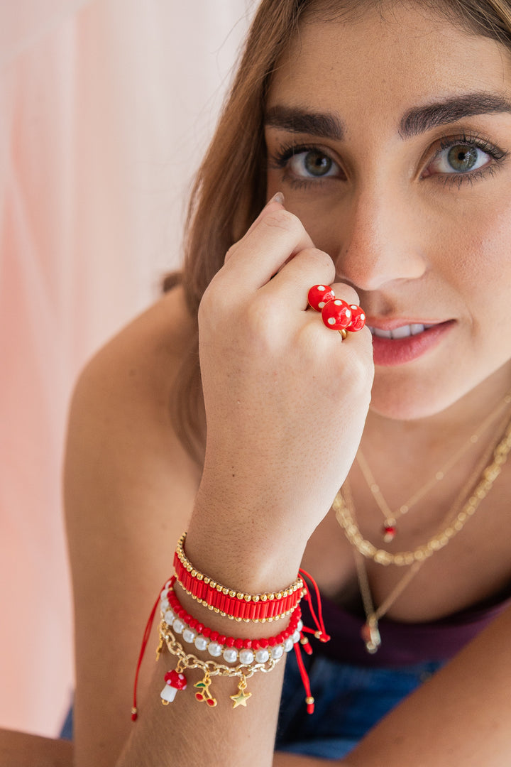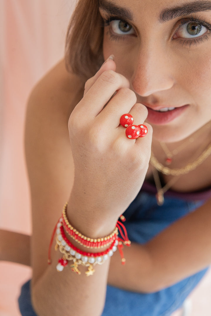 - Incluye: 1 anillo dorado con tres honguitos.