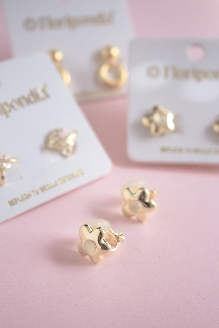 - Incluye: 1 par de aretes flor, para usar estos aretes no necesitas perforación son de presión.