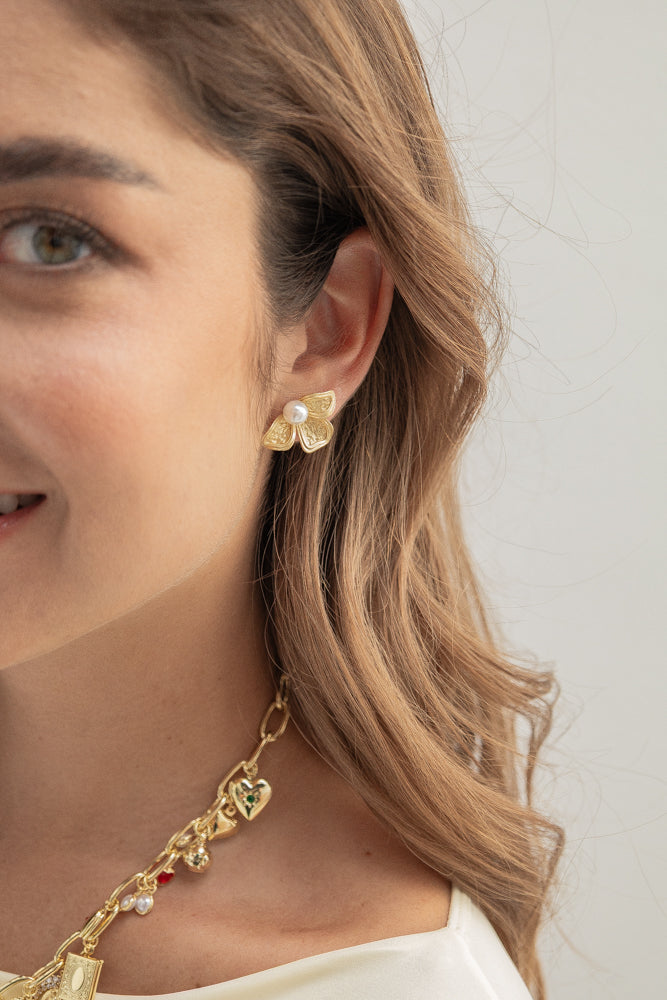 - Aretes elaborados en Bronce con baño de oro de 24k mate.