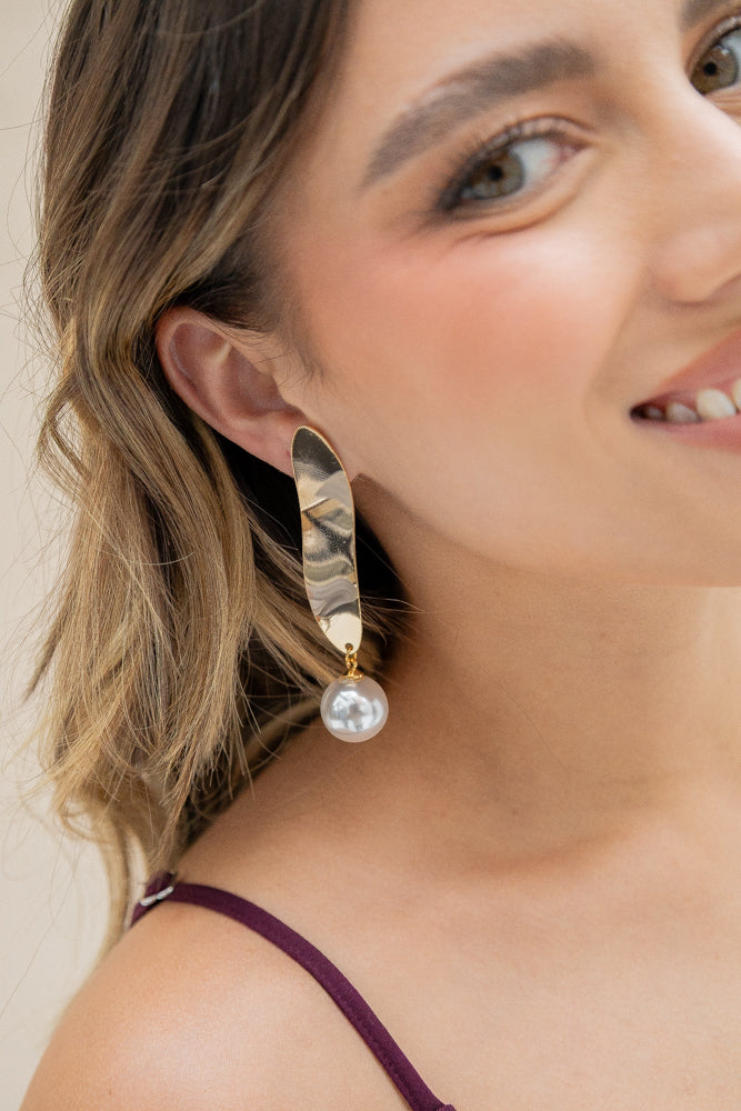 - Aretes elaborados en Acero con baño de oro de 24k y perla.