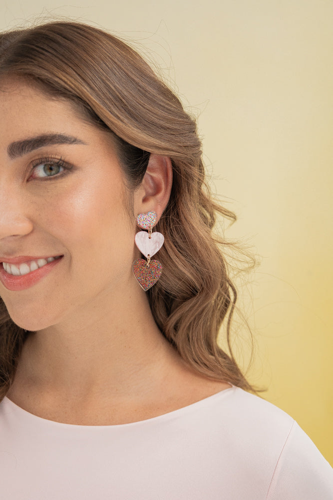- Incluye: 1 par de aretes rosado multicolor.