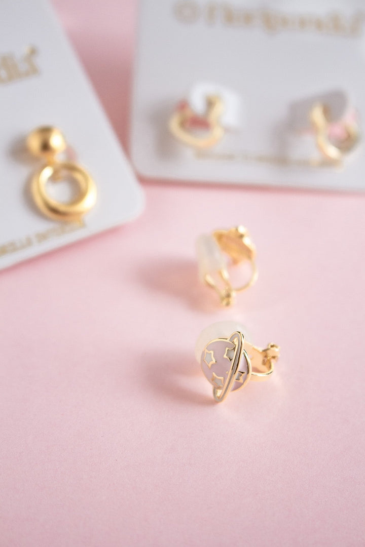 - Incluye: 1 par de aretes planeta rosado, para usar estos aretes no necesitas perforación son de presión.