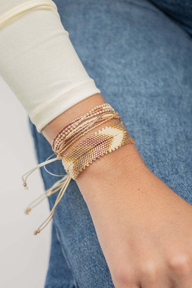 - Set de pulsera tejida en Miyuki japones con nudo corredizo.