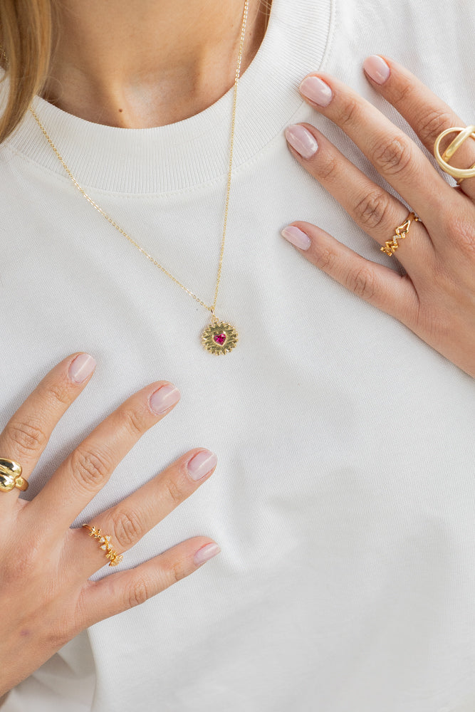 - Incluye: 1 cadena con dije de corazón fucsia como se ve en la foto.