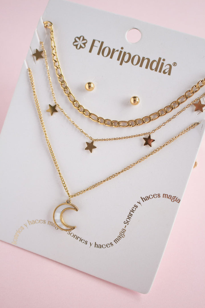 - Incluye: Trio de cadena estrellas, luna, vienen unidas.