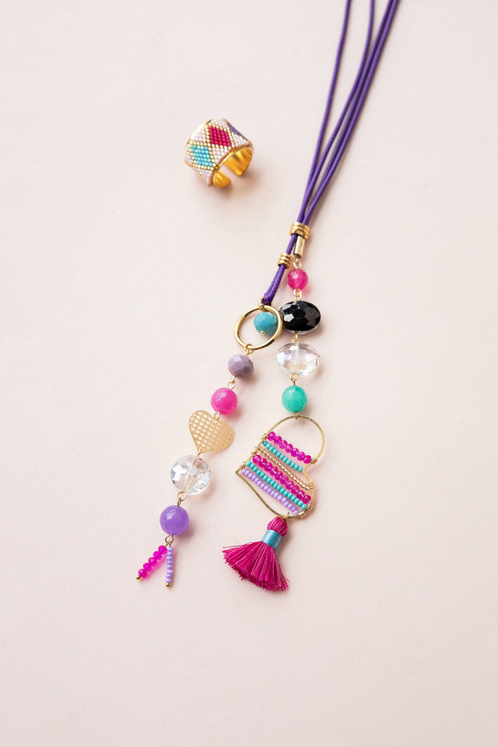 Manejamos piedras naturales (ágata, ojo de gato, coral, amatista, cuarzo, jade, granate, lapislázuli, ónix, turquesa y ojo de tigre), mostacillas checas y miyuki japonés.