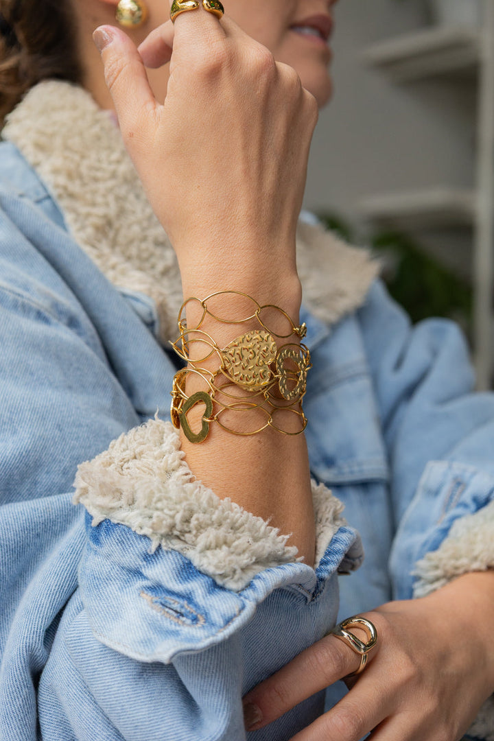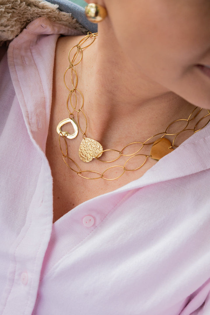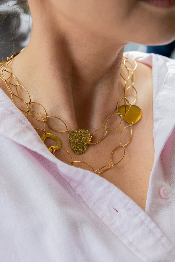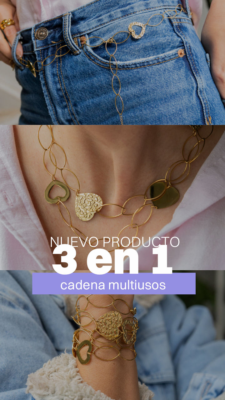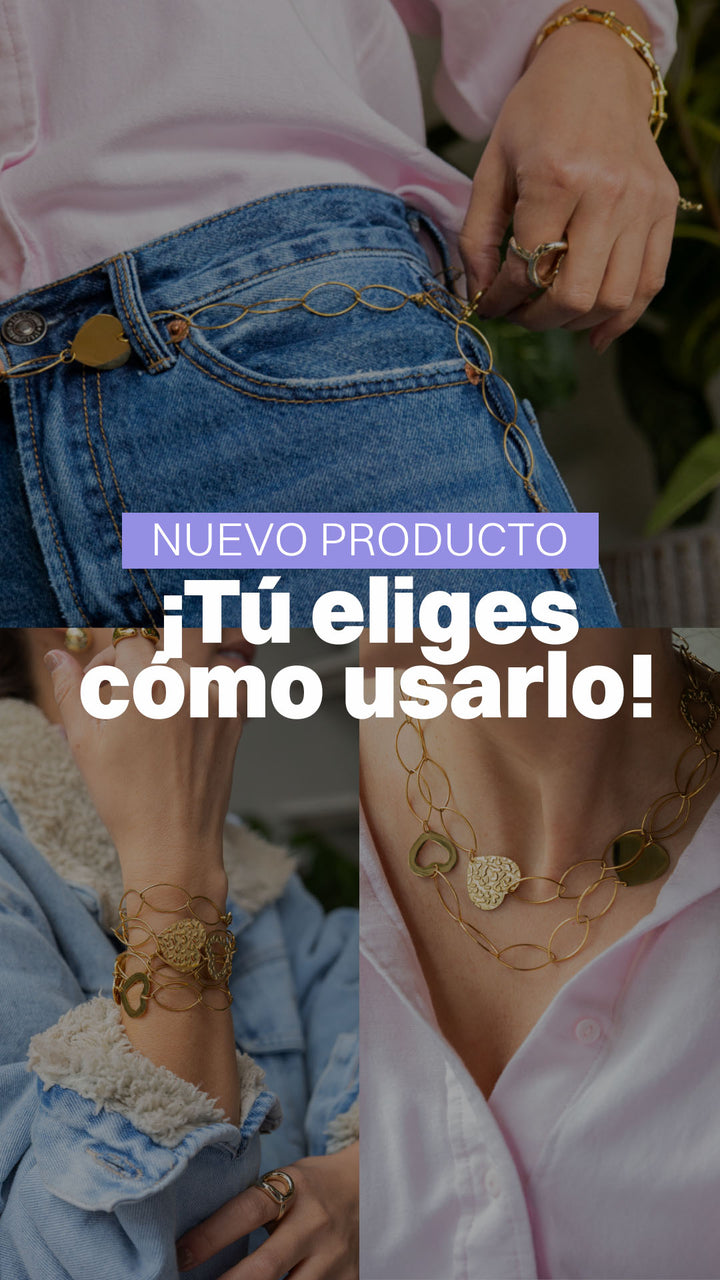 • Collar en acero con baño en oro de 24k es multiuso lo puedes usar como pulsera, collar o cinturón.