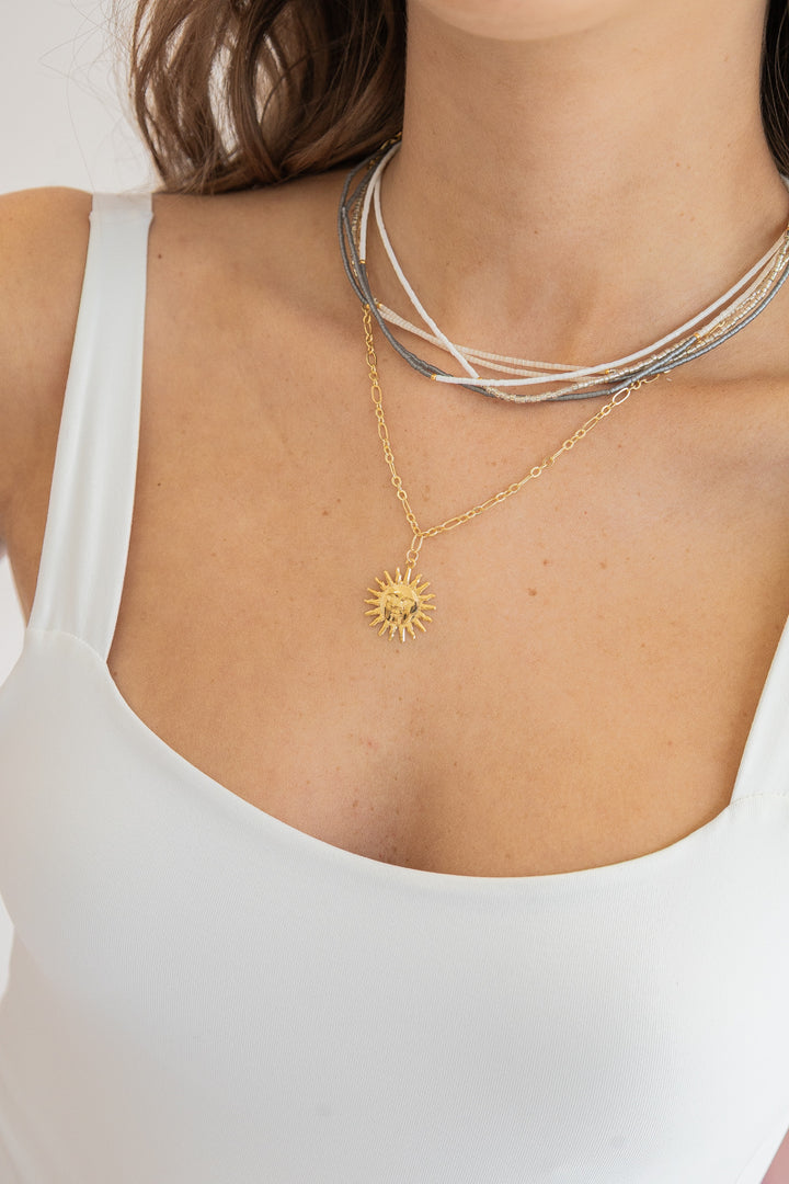 Manejamos piedras naturales (ágata, ojo de gato, coral, amatista, cuarzo, jade, granate, lapislázuli, ónix, turquesa y ojo de tigre), mostacillas checas y miyuki japonés.