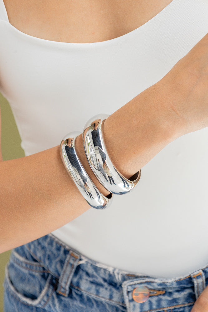 - El combo incluye 2 pulseras plateadas y 1 par de aretes plateado largos (Como se ve en la foto).