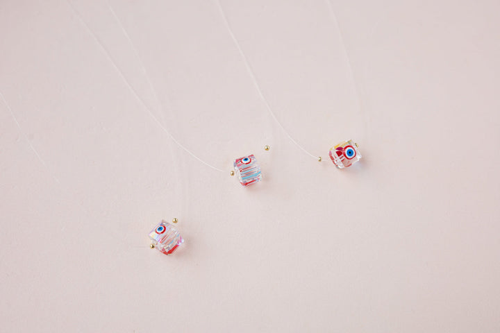 - Cadena invisible elaborada en Nylon, dije en vidrio acabados en oro golfilled.