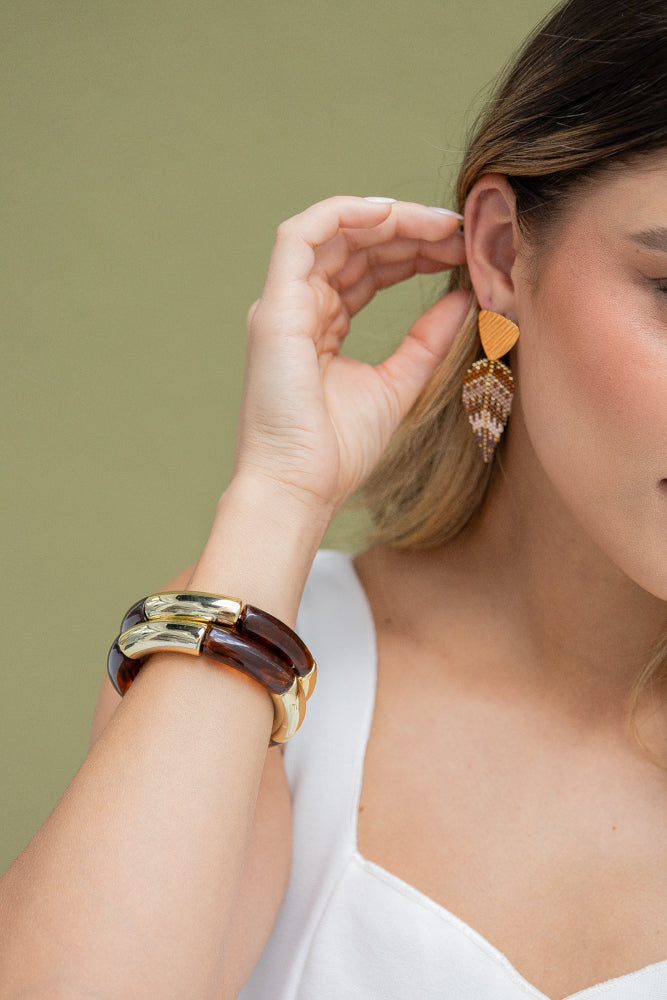 - Pulsera en resina con acabados en acero con un baño de oro de 24k.