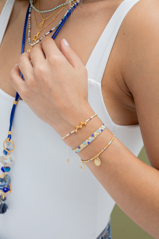 - Set de pulsera tejida en Miyuki japones con nudo corredizo.