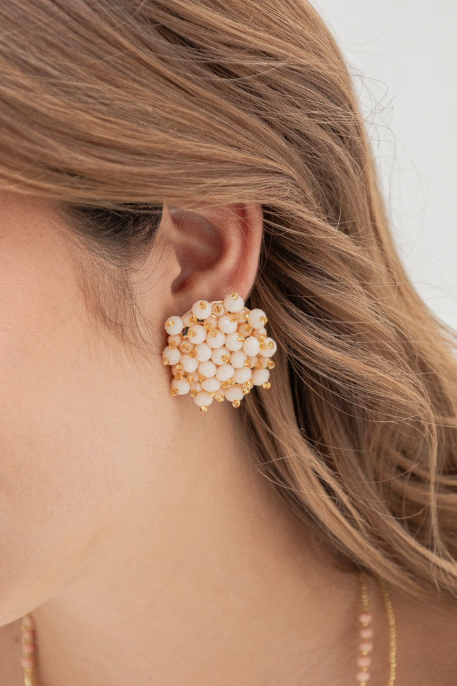- Aretes elaborados en muranos y mostacilla.